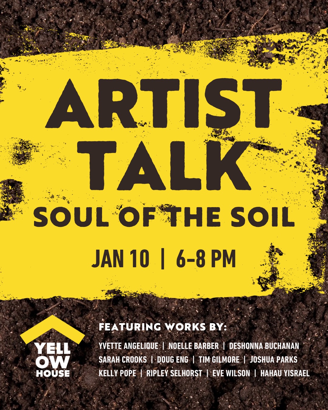 Join us for an evening of rich conversation with the artists of the Soul of the Soil exhibition. Hear directly from a diverse, wise, and compassionate group of artists whose works explore their connections to place, land, and memory. More than creative musings on dirt, the exhibition is a vessel for remembrance,repair and reimagination.